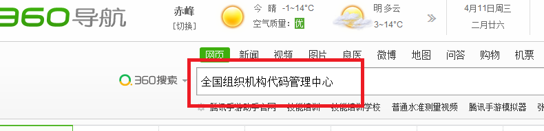 第一步:浏览器中输入’全国组织机构代码’,回车