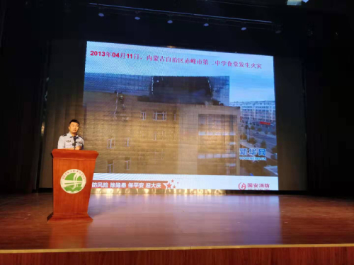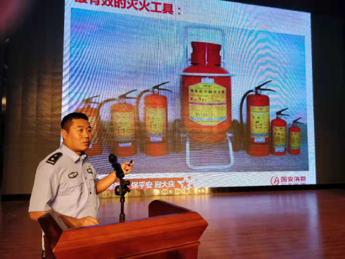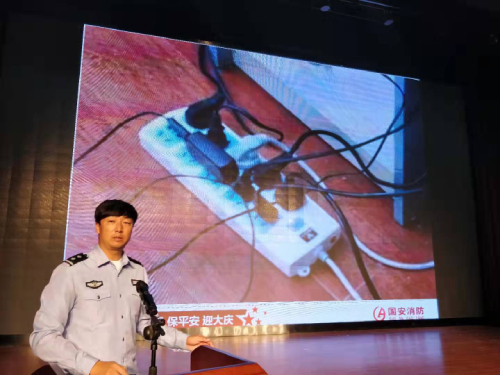 安全保卫处工作人员通过图片、视频,系统地讲解了消防安全知识,结合火灾事故案例,介绍了如何进行火灾报警、应急疏散、逃生技巧等消防常识。