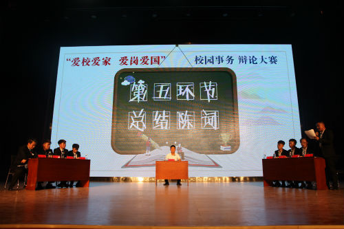 本次大赛分为三个阶段,分别是辩题征集、网上辩论和现场辩论。经过近一个月的激烈角逐,6月13日,学院举行了校园事务辩论大赛现场辩论赛的决赛。学院党委委员、办公室主任姚利军,学工部部长周立宏、学生工作处处长刘国栋、后勤处副处长海玉、院团委书记丁怡颖出席大赛。