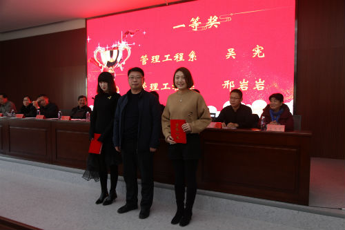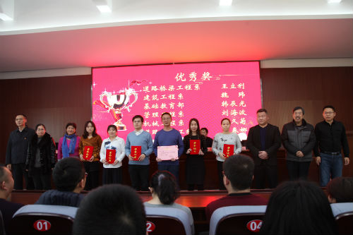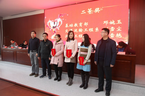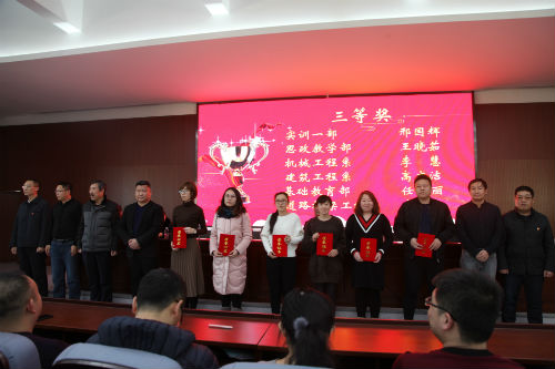 在热烈的气氛中,为教师教学能力大赛获奖选手颁奖,并合影留念。