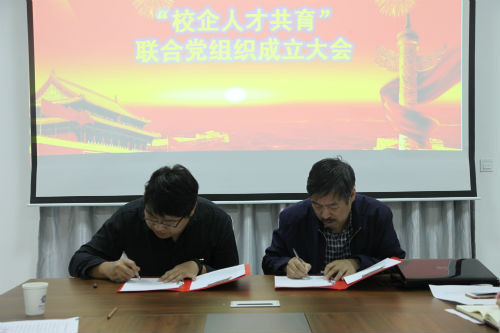 在热烈的气氛中,王晓军书记和刘一飞副书记签订了联合党组织融合共建协议,并为联合党组织成立进行了揭牌。