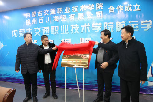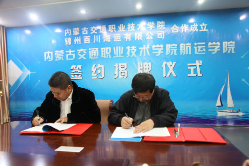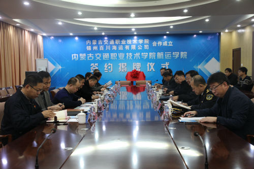 12月12日,我院与锦州百川海运有限公司合作成立航运学院签约揭牌仪式在综合楼会议室举行。赤峰市教育局局长韩立中、赤峰市交通局副局长泥贺春、赤峰市地方海事局局长张宏利、锦州百川海运有限公司董事长林述文、锦州百川海运有限公司总经理秦世龙,以及学院院长尚庆华、党委副书记祁山、副院长王建军及有关部门负责人参加揭牌仪式。仪式活动由祁山副书记主持。