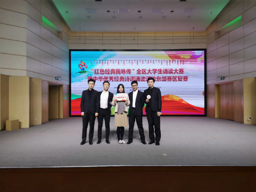 12月2日,“红色经典我咏传”全区大学生诵读大赛暨中华优秀经典诗词诵读活动东部赛区复赛在内蒙古民族大学举行,我院学生田恺、张琪、刘诗佳、赵鑫宇的作品《不朽》挺进前三名,获得晋级总决赛资格。