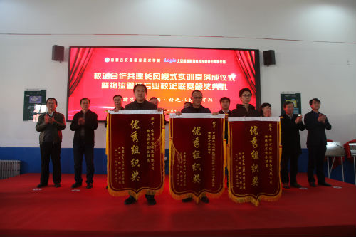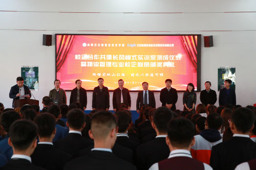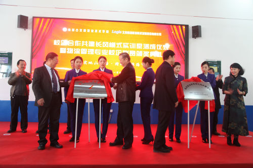 在热烈的气氛中,刘玉海副秘书、恽绵副会长、张晓梅副总裁、尚庆华院长为校企合作共建长风模式物流实训室的落成揭牌。