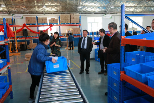 仪式结束后,一行人参观了我院物流实训室,现场观摩了学生物流作业的操作表演。