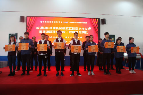 随即,为物流管理专业校企联赛获奖的学生选手和企业选手颁奖,并合影留念。