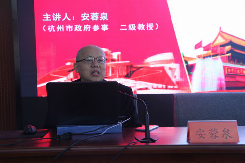 安蓉泉教授站在理论与实践结合的高度,从高职院校文化建设效果的反思入手,剖析了当前职业院校普遍存在认知错位、主体错位和方法错位的“一二三”现象,并通过典型案例系统阐述了杭职院在“文化梯度育人”和“政治文化工作”的先进理念和成功做法,对“课程思政”相关问题进行了深入分析和独到思考,并就高职院校下一步政治文化育人工作提出了指导思路和具体措施。讲座与时俱进、严谨务实、内涵丰富、深刻精彩,既有对党的教育政策的深入解读,又有对经济社会发展的分析思考,既有深层次的理论感悟,又有对工作实践的灵活指导,深受广大教职工的好评。
