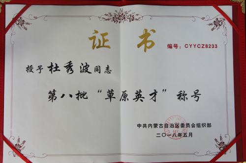 近日,自治区党委组织部会同教育厅、科技厅、人社厅等有关部门完成了自治区第八批“草原英才“工程的常规评审、专项推选、人才项目引领支持计划及滚动支持计划的评审工作,并发文公布评审结果。我院教师杜秀波荣获“草原英才”称号。