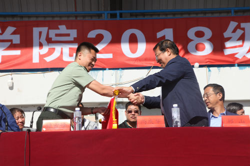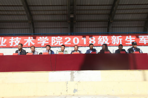学院相关部门负责人,全体军训教官,2018级新生及班主任、辅导员参加了大会。