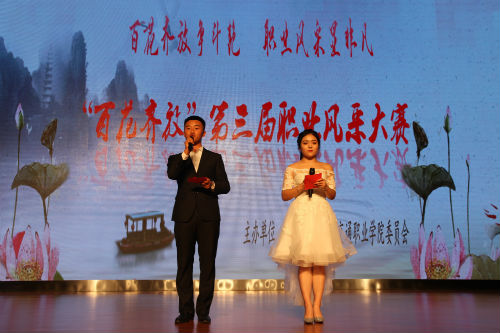 为落实职业教育内涵发展,促进学生全面发展,引导学生树立积极向上、奋发有为的人生观、价值观,鼓励学生展示自身特长、职业素养、职业礼仪、职业形象和朝气蓬勃的精神风貌,6月27日,我院举行以“百花齐放争斗艳,职业风采显非凡”为主题的第三届职业风采大赛。学院教务处侴金贵处长、学工部周立宏部长、学生工作处刘国栋处长、团委丁怡颖书记及相关部门负责人出席。