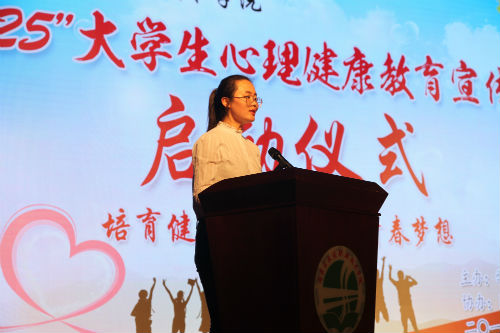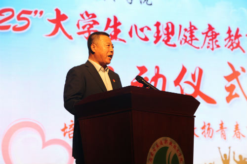 仪式上,学生处处长刘国栋宣读学院第九届“5·25大学生心理健康教育宣传月活动方案。