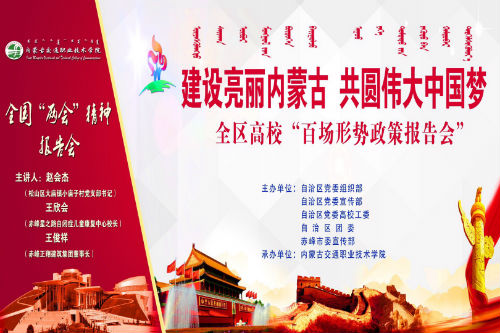 在深入学习贯彻习近平新时代中国特色社会主义思想和党的十九大精神,认真学习全国“两会”精神特别是习近平总书记参加内蒙古代表团的重要讲话精神之际,按照自治区党委和赤峰市委的统一部署,4月27日,我院举行了以“建设亮丽内蒙古 共圆伟大中国梦”为主题的2018年首场形势政策报告会,特邀全国人大代表赵会杰、王欣会、王俊祥宣讲了全国“两会”精神特别是习近平总书记参加内蒙古代表团的重要讲话精神。党委副书记祁山、副院长王建军、副院长郑广军及副科级以上干部、教师和学生代表近400人聆听了报告。