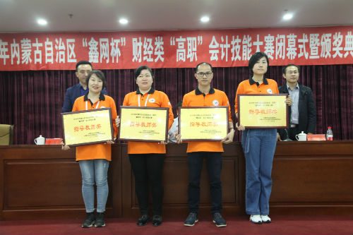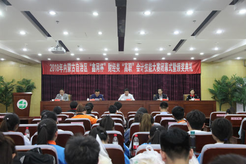 4月20日,2018年内蒙古自治区财经类(高职)“鑫网杯”会计技能大赛闭幕颁奖典礼在我院综合楼会议室举行。自治区高职财经类专业建设指导委员会副主任委员袁鹏宣读获奖者名单,学院副院长王建军致辞,管理工程系主任王卫蛟主持典礼仪式,大赛裁判长李银玉、呼和浩特市鑫网科技有限责任公司总经理于海奇及参赛选手、领队、裁判员参加典礼活动。