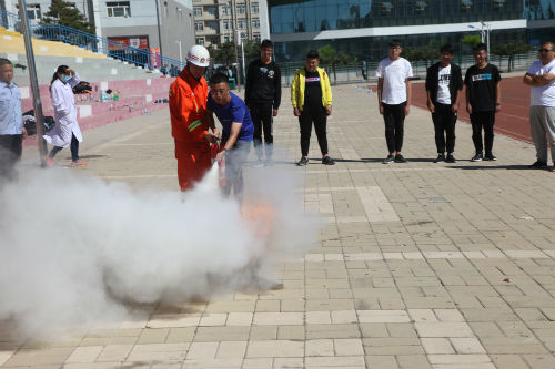 随即,消防官兵讲解了灭火器、消火栓的使用方法,并现场与学生进行了实习演练。