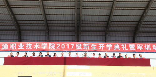 9月8日,我院2017级新生开学典礼暨军训动员大会在田径运动场举行。赤峰市松山区人民武装部政委孙英、学院院长尚庆华、党委副书记祁山、常务副院长张子波、副院长郑广军出席大会。全体军训教官,学院有关部门负责人,2017级新生及班主任、辅导员参加大会。大会由教务处处长侴金贵主持。