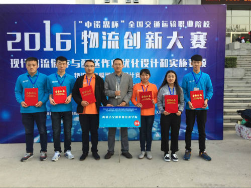 10月12—14日,由全国交通运输职业教育教学指导委员会主办的2016年度“中诺思杯”全国交通运输职业院校物流创新大赛在天津交通职业学院举行,共有来自全国五十一所高职院校的学生代表队参加比赛。经过激烈的角逐,我院管理工程系孟金环和王晓东教师指导的物流管理专业学生张楠、李斌、王旭峰、郭伟团队荣获“现代物流储存与配送作业优化设计和实施”赛项的团体二等奖。