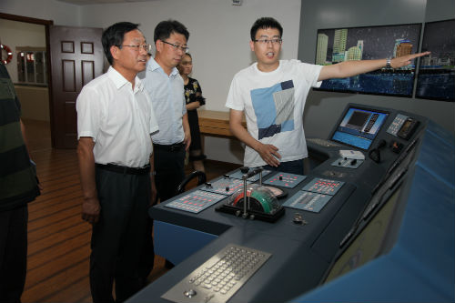 座谈会后,贾洪榛主委一行先后参观了铁路实训室、船员实训室、汽车实训室和道桥实训室。