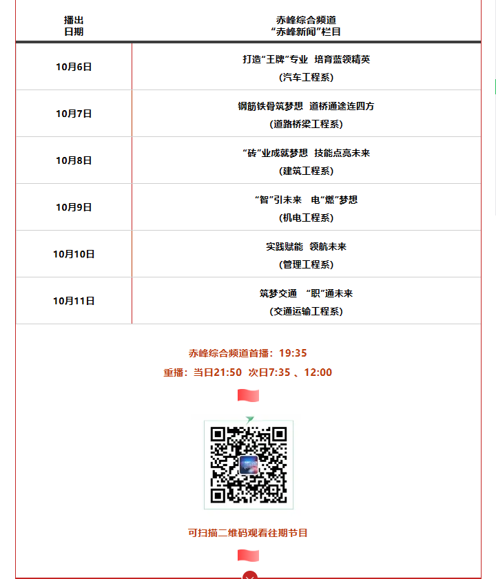 学院办学50年成果总结系列活动受到社会各界的广泛关注,从今天起,赤峰电视台综合频道“赤峰新闻”栏目特推出“匠铸家园 梦圆交通”六期系列报道。让我们翻开浓墨重彩的时代画卷,感受蓬勃发展的时代脉动。