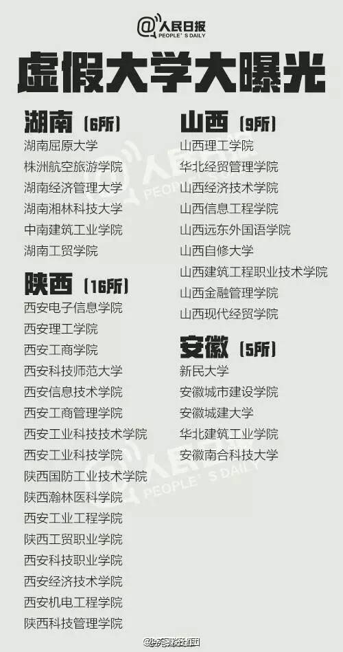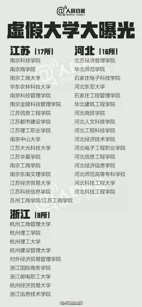 高考结束后,“虚假高校”也要开始作祟了。上大学网从2013年到2016年共曝光5批虚假大学名单,一些虚假学校被曝光多次仍换个域名继续存在。这些学校绝大部分仿冒正规高校名称,连学校简介也是抄袭拼凑而来。